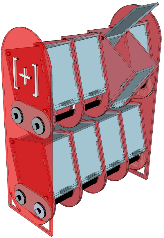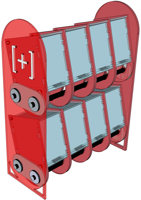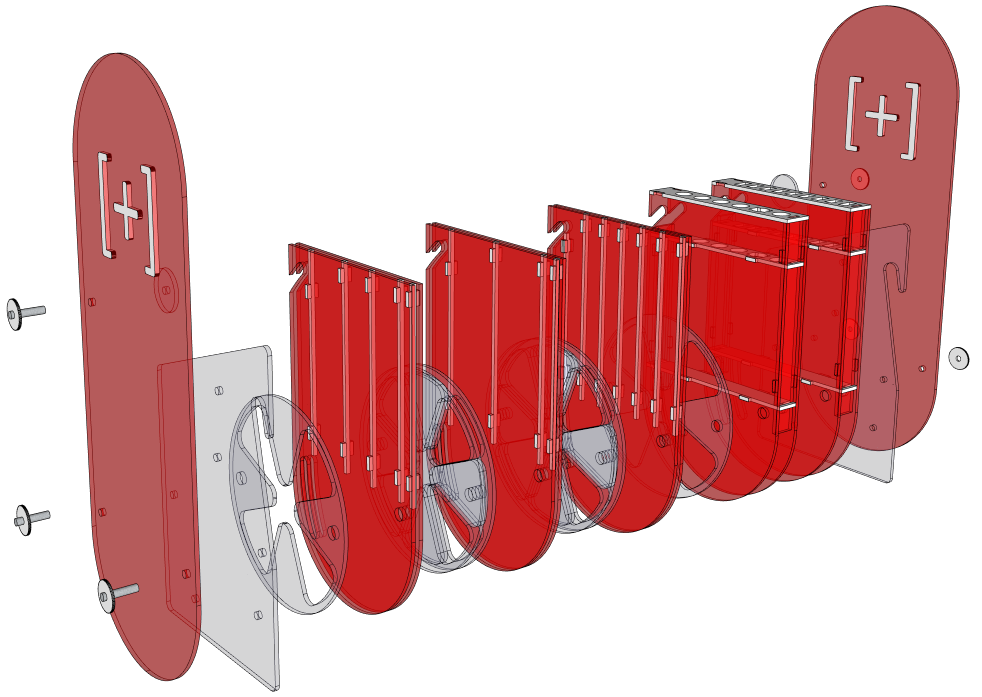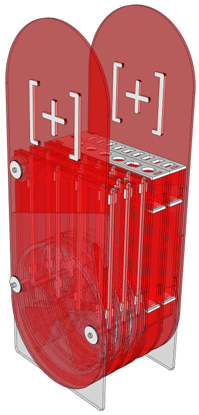 Fabriqué en PMMA ("Plexiglas") translucide (coloris personnalisable).